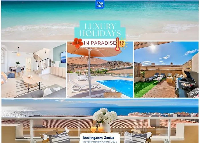 Black Beach Luxury Vacation House Villa dispone di un patio soleggiato con vista sulla piscina e di una piscina con trampolino. Situato a una distanza di 3 km dalla Spiaggia di Alcalà, la villa offre la possibilità di praticare canottaggio, tiro con l'arco e tennis sull'erba.